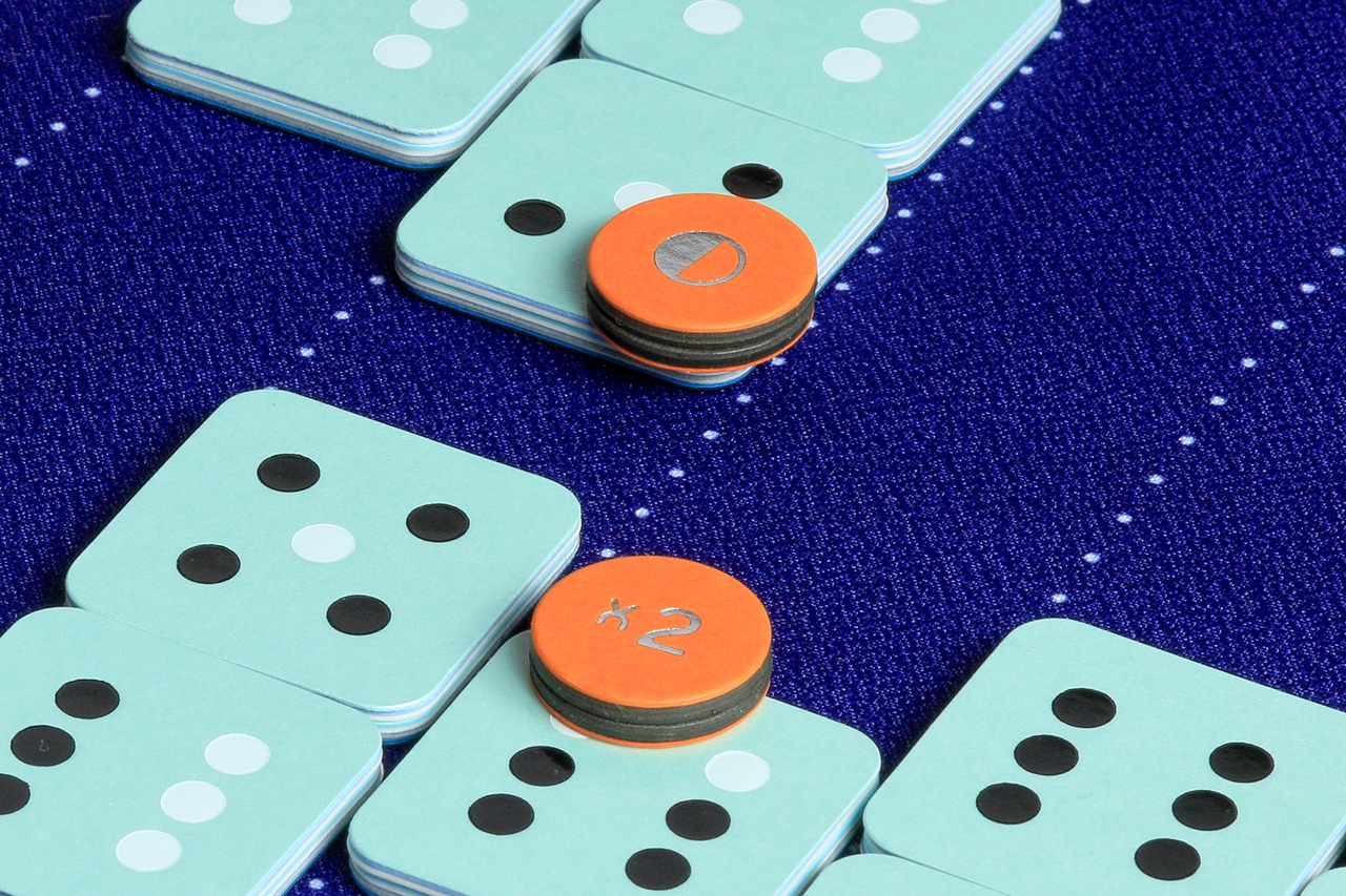 Decide each player’s dice color, then according to the dice pips’ color and number, place corresponding tiles alongside their dice.