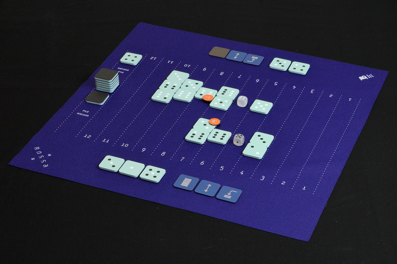 Utilizing 3 Action Cards and one of the 2 Modifier Chips, avoid being backed into a corner and play your tiles. One more or one less tile only can be placed alongside previously place tiles.