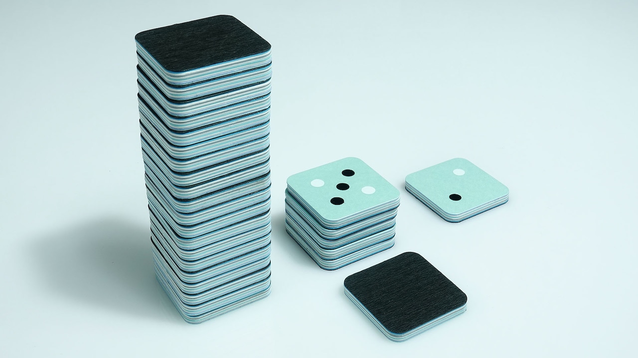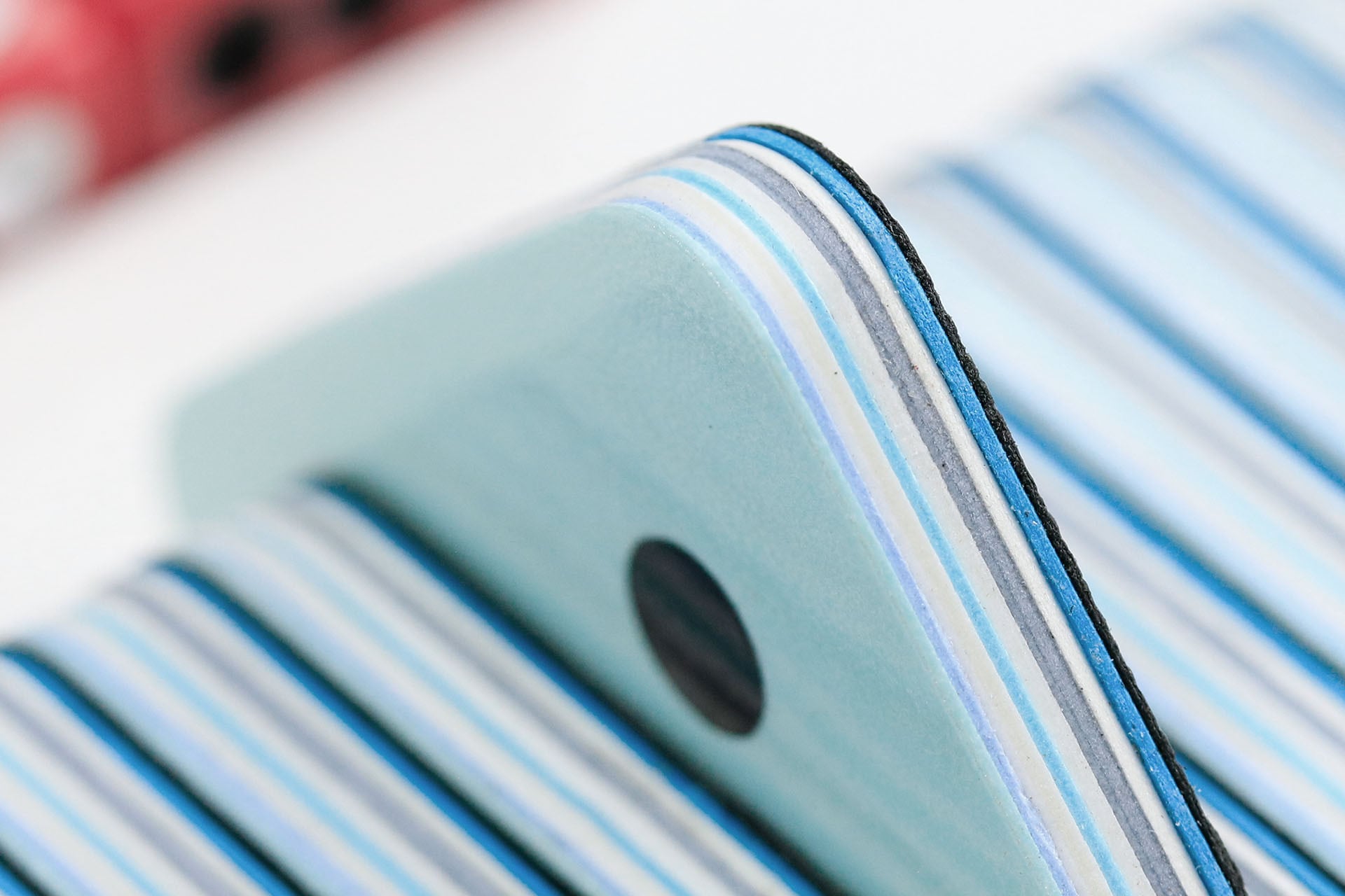 The tiles are thicker than CLASSIC edition, and are made of 9 layers of dyed paper in different colors. It has a beautiful cross section and a pleasant weight when held in the hand.